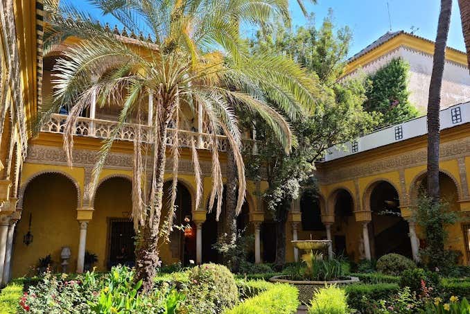 A la hora indicada nos reuniremos en la puerta principal del Palacio de las Dueñas para comenzar la visita y descubrir sus rincones. Iniciaremos un recorrido por esta joya arquitectónica que combina los estilos gótico-mudéjar y renacentista, relevante en los siglos XV y XVI. Su nombre proviene de un antiguo monasterio. Durante el recorrido, compartiremos curiosidades sobre su origen y su asociación con personajes históricos como los Pineda, la Casa de Alba y el escritor Antonio Machado.