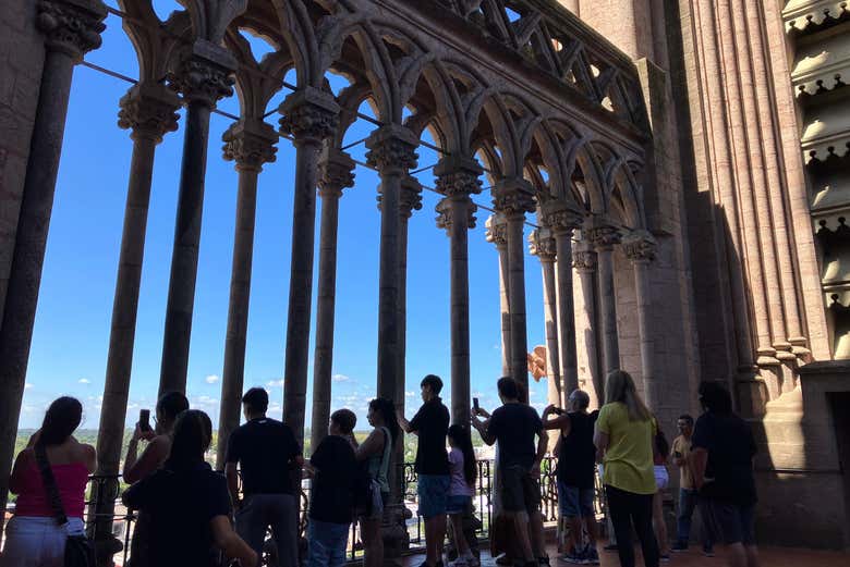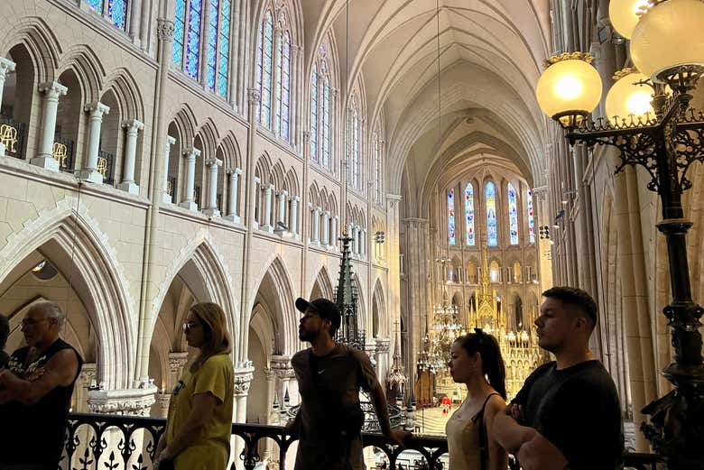 Después de recargar pilas, regresaremos a la basílica para subir a las torres. Una vez arriba, visitaremos la galería alta, que ofrece una vista privilegiada del interior del templo. Engalanado con su estilo neogótico, este edificio se distingue por sus esbeltas columnas, vitrales y detalles arquitectónicos.