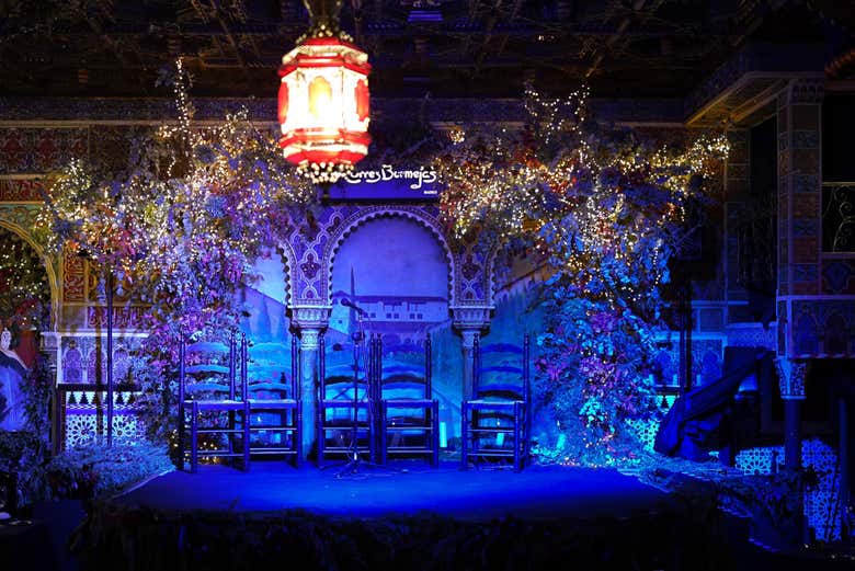 La estética del tablao es igualmente impactante. Su decoración, inspirada en el arte andalusí, presenta techos de madera y elementos ornamentales árabes, brindando a los visitantes una experiencia casi mágica que los transportará a la Granada del siglo XIV.