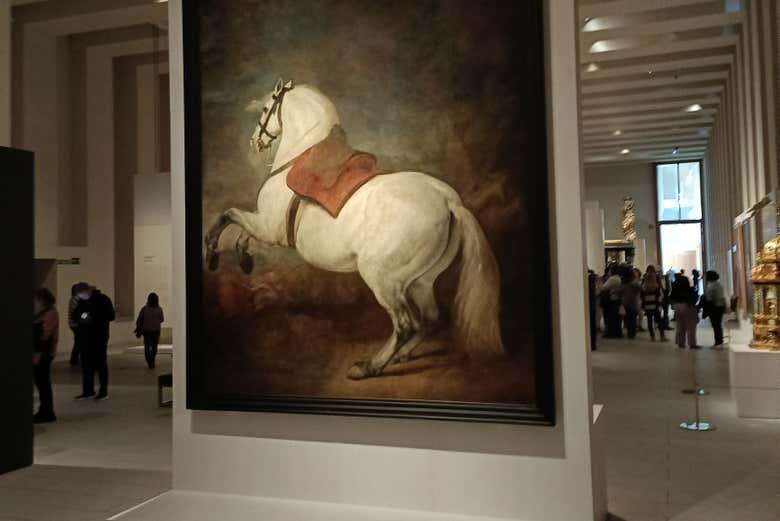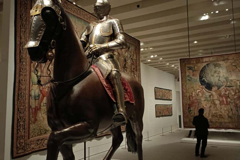 En la sección dedicada a los Austrias, resaltan la escultura del arcángel San Miguel venciendo al demonio, creada por La Roldana, y el famoso lienzo del caballo blanco sin jinete de Diego Velázquez. Además, contemplaremos una armadura para caballo y jinete perteneciente a Carlos I.