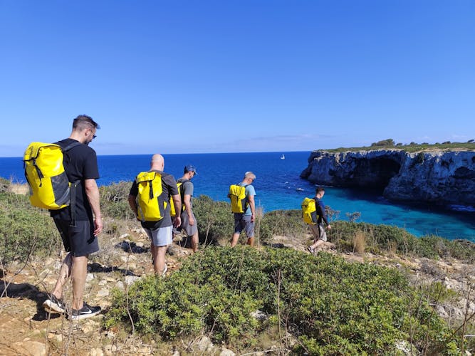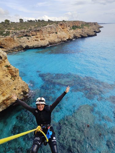 La combinación de una caminata panorámica, la opción de hacer rapel o nadar, y la exploración de las fascinantes formaciones cavernosas crea una experiencia inolvidable. El recorrido comienza con un tranquilo paseo por los acantilados, que ofrece vistas panorámicas de la costa este de Mallorca. Al llegar a la apartada playa de Cala Falcó, se presentan dos opciones aventureras. La primera implica descender en rapel hasta el nivel del mar; la segunda requiere buena natación, ya que nadarás todo el trayecto desde la playa hasta la cueva, un recorrido de aproximadamente 200 metros.