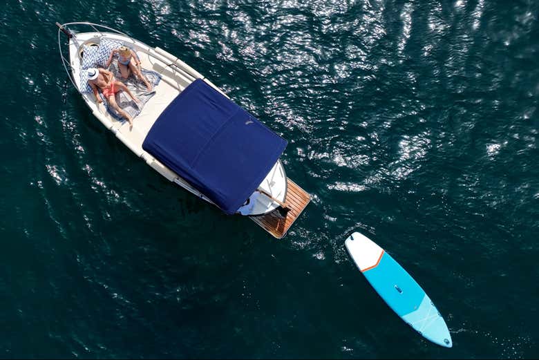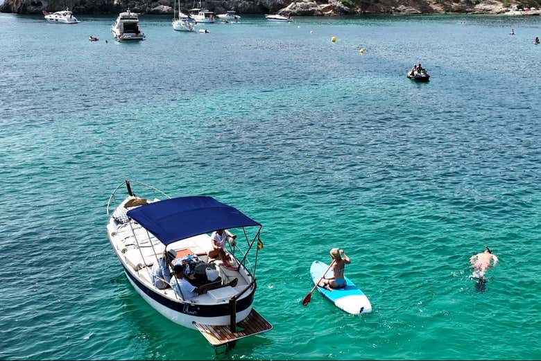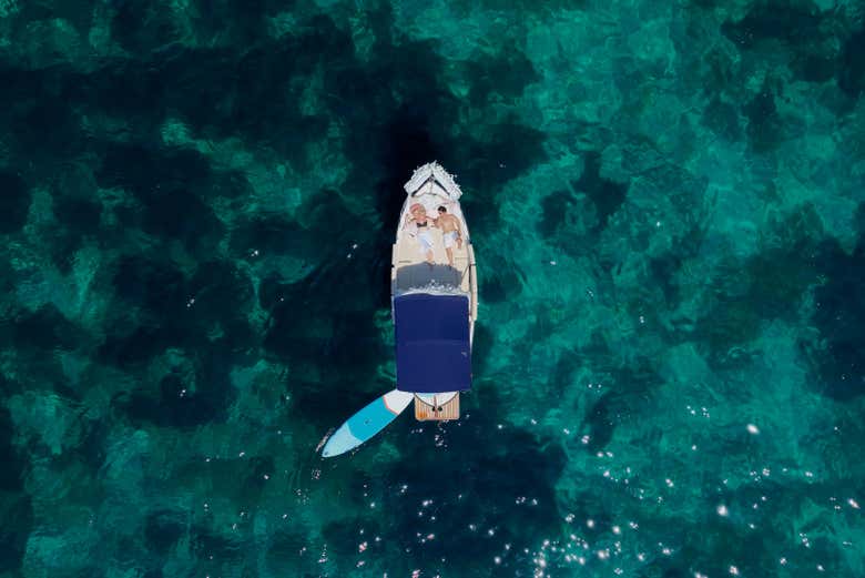 Después, nos dirigiremos a la zona de Illetes, donde tomaremos un snack a bordo y 3 bebidas por persona, a elegir entre cerveza, refresco o agua. Tendremos una pausa de una hora, durante la cual podréis practicar snorkel o paddle surf, proporcionando todo el material necesario.