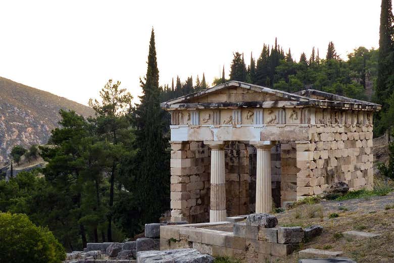 Al llegar, dedicaremos dos horas y media a explorar el monumento a los reyes de Argos, el Tesoro y el célebre Templo de Apolo. Después, nos dirigiremos al Museo Arqueológico para apreciar sus obras destacadas, incluyendo el famoso Auriga de Delfos.