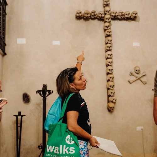 Contempla miles de huesos en la cripta de Santa Maria dell'Orazione e Morte durante una visita reservada para tu pequeño grupo.