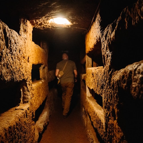 Aprende sobre el cristianismo primitivo de la mano de un guía mientras caminas por los extensos y oscuros túneles.