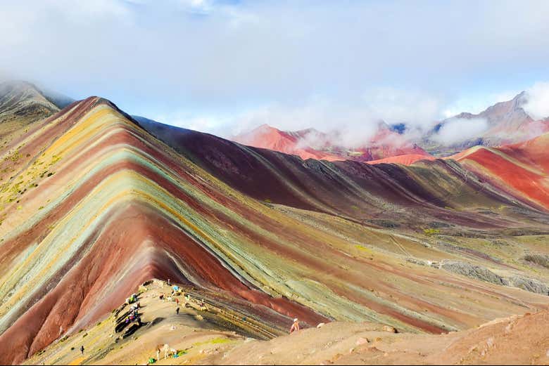 Al concluir el paseo en quad, descenderemos y llevaremos a cabo una caminata de media hora hacia Vinicunca, comúnmente llamada la Montaña Arcoíris. Las franjas de colores vibrantes que la adornan han hecho de este lugar uno de los destinos más fotografiados de Perú. Durante nuestra estancia, recibiréis explicaciones sobre la formación de sus distintivos pigmentos minerales. ¡Un verdadero tesoro geológico!