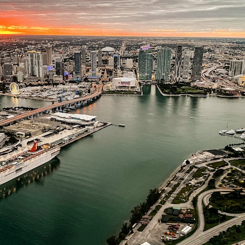 Haz un recorrido privado en avión y admira las vistas del atardecer sobre Miami.