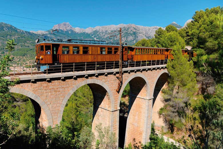 Seréis recogidos en el sur de Mallorca y se trasladarán a las afueras de Palma, donde abordarán un histórico tren con vagones de madera en funcionamiento desde 1912. El trayecto de unos 40 minutos los llevará a Sóller, atravesando Son Sardina, Caubet y Bunyola.