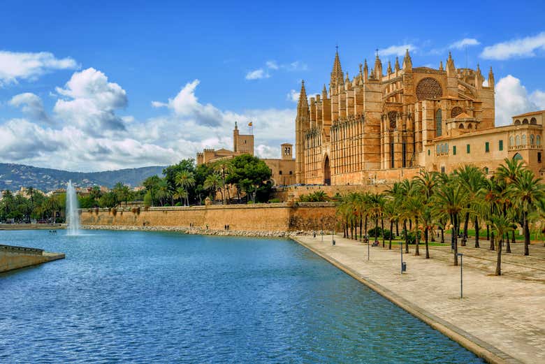 Durante media hora recorreremos el litoral de la capital balear y haremos paradas frente a lugares emblemáticos como la catedral de Santa María de Palma, donde se encuentra el mayor rosetón gótico del mundo.