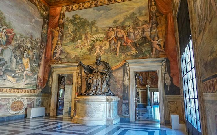 Luego ingresará a los Museos Capitolinos, inaugurados en 1734. Allí admirará la famosa escultura de la loba con los fundadores de Roma, Rómulo y Remo, y admirará objetos e instrumentos antiguos de la época.
