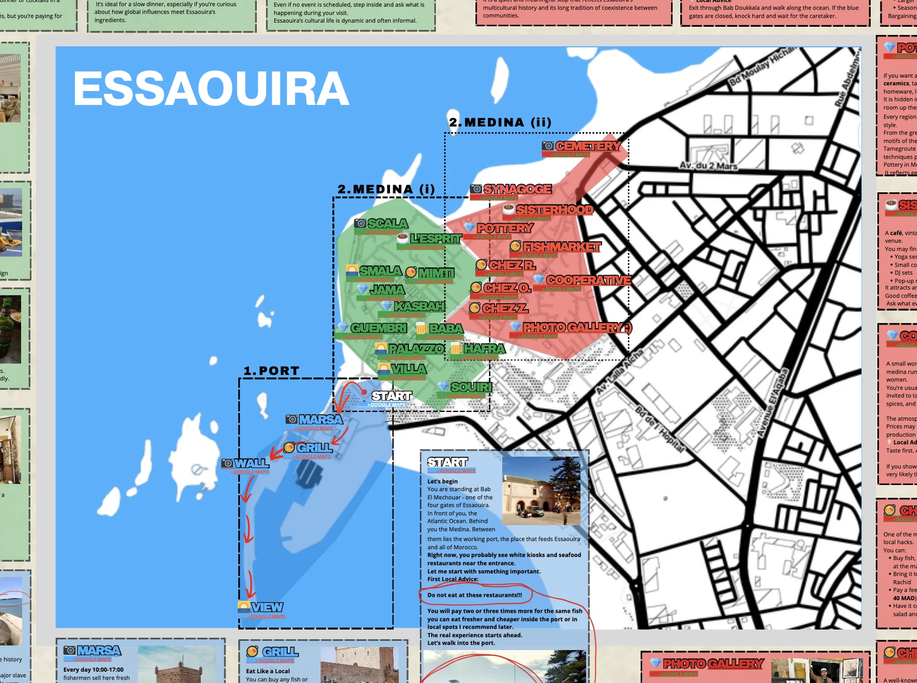 Invece, esplorerai Essaouira da solo, utilizzando la mia mappa segreta e i link di Google Maps nel mio PDF.