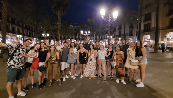 Dopo due ore di viaggio, concluderemo questo tour notturno gratuito in Plaza Real .