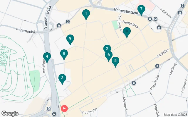 Il punto di partenza del tour è accanto all'hotel PARK INN in piazza Rybné (Rybné námestie in slovacco), vicino alla Colonna della Peste.