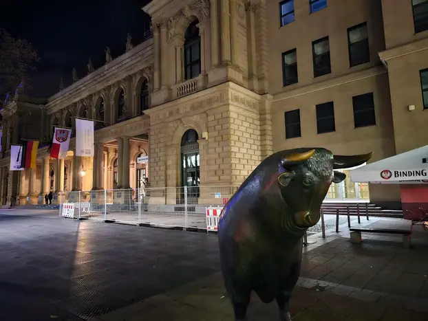 Il nostro tour inizia alla Borsa di Francoforte (facile da raggiungere, proprio nel centro città), ci porta all'Alte Oper e attraverso il quartiere bancario fino a Roßmarkt/Goetheplatz.