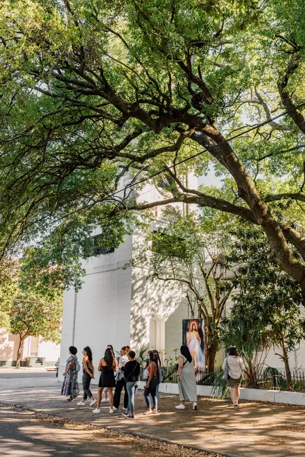 Ti aspetto a Tuba Fats Square, un piccolo parco situato all'angolo tra St. Phillips Street e N. Robertson Street. Porterò sempre con me il badge del permesso di guida turistica e normalmente indosserò sfumature di viola, blu o verde.