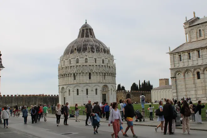 Apprenderemo l'origine del nome della piazza della Cattedrale, conosciuta in tutto il mondo come piazza dei Miracoli. Passeggeremo per la piazza fermandoci in alcuni punti dove potremo ammirare i vari monumenti che la compongono.
