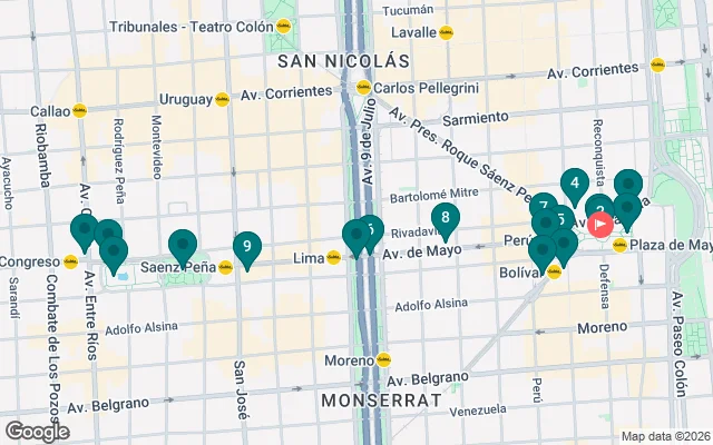 Dalla Plaza del Congreso alla Plaza de Mayo, percorrendo l'elegante architettura e i passaggi dell'Avenida de Mayo, la più antica del Sud America.