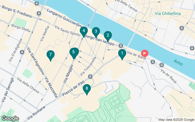 Questo tour attraversa una zona piuttosto sconosciuta della città, sull'altra sponda del fiume Arno, dove i turisti non arrivano, troviamo il quartiere di Oltrarno, pieno di viuzze strette, con angoli magici e dove poter scoprire la Firenze più autentica. Visiteremo luoghi come il Corridoio Vasariano, la Torre Barbadori, la fontana dello Sprone o la Casa della Monna Lisa per terminare con uno dei palazzi più imponenti di Firenze, il Palazzo Pitti. Una zona che, inoltre, è piena di bar e ristoranti, e con un'atmosfera piuttosto alternativa. Non mancheranno raccomandazioni gastronomiche e di qualsiasi altro tipo per poter godere al massimo della città.