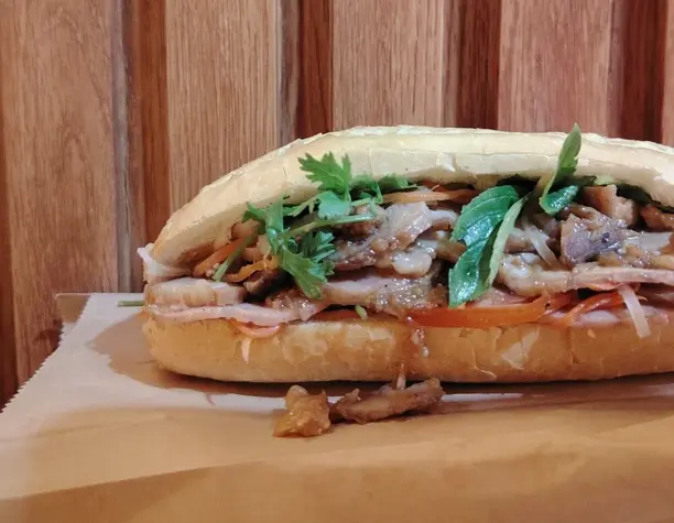 Iniziamo con un bánh mì in stile Hue: croccante, caldo e pieno di deliziosi ripieni locali. Questo classico panino vietnamita è il modo perfetto per risvegliare il tuo palato.