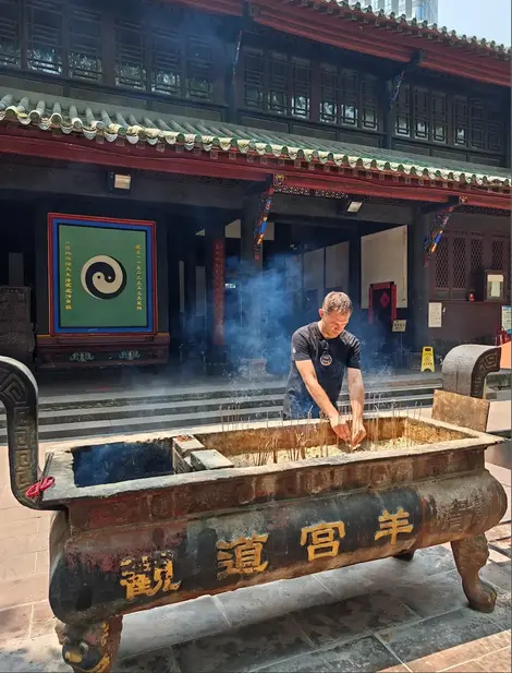 Poi, entra nella tranquillità al Palazzo Qingyang, il tempio taoista più antico e sacro del Sichuan. Strofina la “Capra dei Dodici Zodiaci” di bronzo di 300 anni, ritenuta capace di guarire i mali, e accendi l'incenso per estrarre un “Bastoncino dell'Oracolo di Lüzu.” Decifra l'antica saggezza con i taoisti residenti e ammira le meraviglie architettoniche, incluso il Padiglione Bagua con i suoi 81 draghi scolpiti.