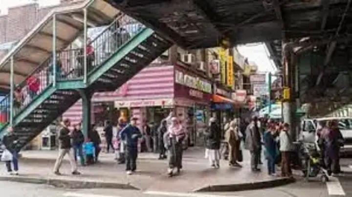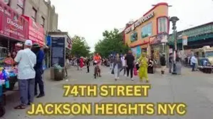 Iniziate il vostro percorso sotto la linea 7 della metropolitana, in 74th Street. Questo vivace corridoio pulsa di energia proveniente dalle comunità latinoamericane e sud-asiatiche. Notate la segnaletica bilingue e ascoltate le indicazioni in lingue come spagnolo, urdu, bengalese e nepalese.