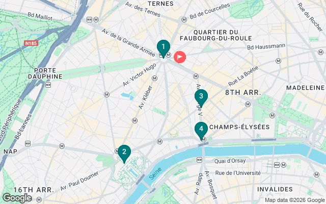 Il tour Inizia all'arco di Trionfo davanti la boutique di Montblanc sugli champs élysées e termina dopo 2h30 sul ponte di Iena tra la Torre Eiffel e il Trocadero.