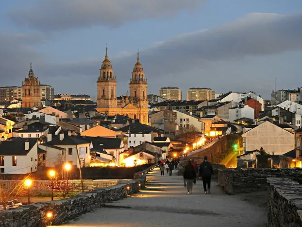 Inizieremo il nostro tour dalla Plaza Mayor di Lugo, accanto al Municipio. Da lì, esploreremo il centro storico per scoprire le origini della città, risalenti all'epoca celtica e romana. Cammineremo lungo tratti delle Mura Romane e saliremo sul camminamento per ammirare il panorama.