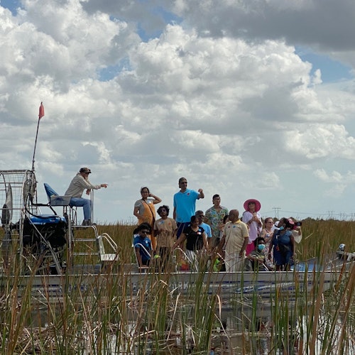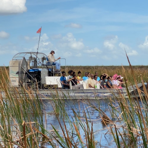Upon arrival you'll join a guided airboat tour of the SawGrass waters. These flat bottom boats powered by propellers glide across the water, making it perfect for discovering wildlife like alligators.
