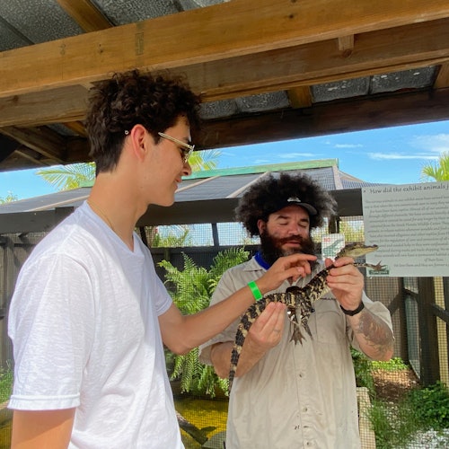 After the airboat ride, explore the exhibit areas which feature over 100 reptiles and mammals which have been adopted and rescued. You'll also have a baby alligator experience, so bring your camera.