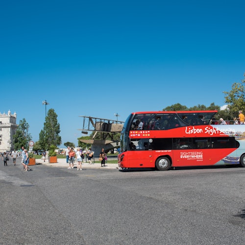 Visit Lisbon and ride red buses for easy sightseeing. Hop-on and hop-off to see museums, monuments, shops, and the zoo.