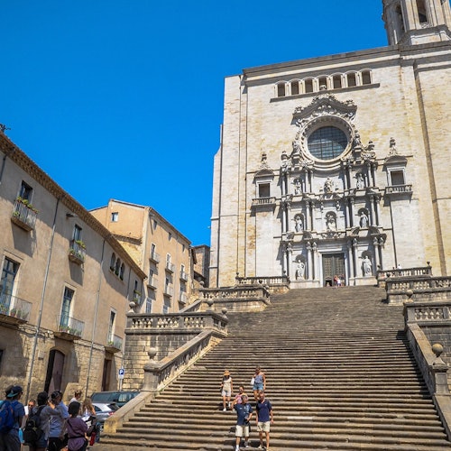 Together with your **expert guide**, travel back in time and get lost in the colorful medieval city of **Girona**, a melting pot of cultures. Winding cobblestone streets will lead you to the **Jewish Quarter**, as well as the remnants of a **Roman wall** and the **Arab baths**.