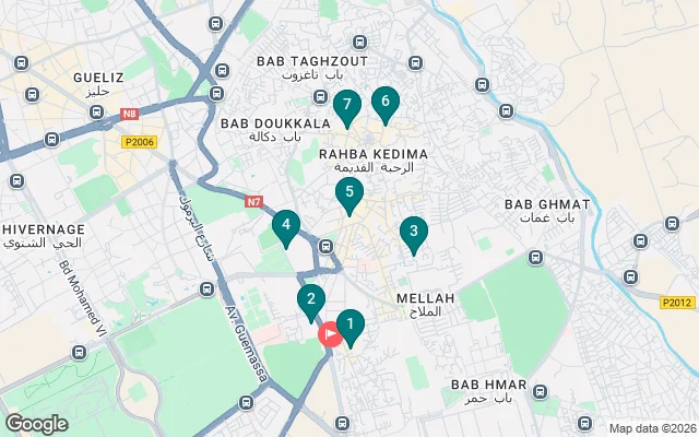 with us, you can enjoy the jam el Fina square and the Koutoubia mosque and the Bahia palace and the restaurant of the traditions of Marrakche, the places we will visit will be 1) bab agnou 2) Saadian tombs 3) koutoubia mosque 4) ben youssef madrasa 5) jam el fina square 6) The souks of Marrakech and the Majorelle garden