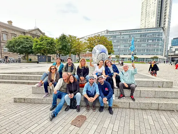 Our final stop is the Docks, where we’ll see the Albert Clock, Belfast’s own Big Ben. Along the River Lagan, we’ll find the Big Fish sculpture, symbolizing the Salmon of Knowledge. Legend says kissing it brings wisdom—let’s give it a try!