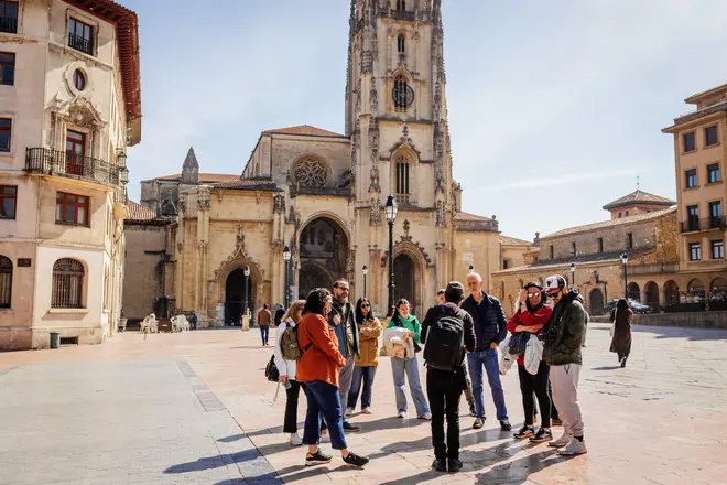 During the 2-hour tour, we'll explore the most important squares in the Asturian capital, such as: Plaza de la Constitución, Plaza Porlier, and Plaza Escandalera. In these and other squares, we'll see iconic buildings like the San Salvador Cathedral and others that may go more unnoticed, like the old fish market. Did you know that Oviedo has more than 100 sculptures? During the tour, we'll see the city's most iconic ones! All of this will be accompanied by gastronomy, interesting facts, legends, and traditions. Are you up for it?