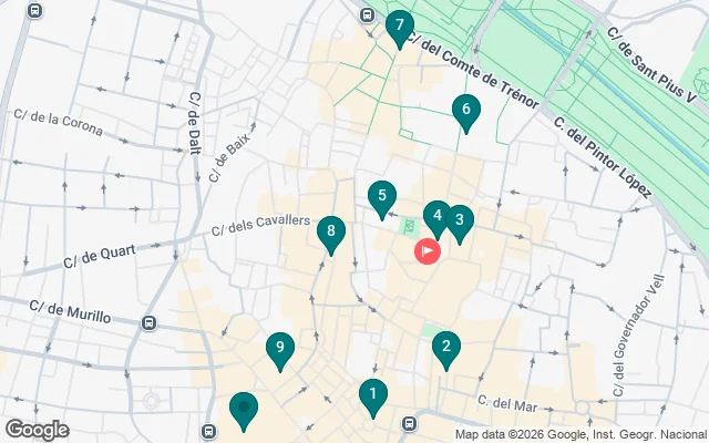 We will talk about two important traditions that take place at this point: the floral offering to the Virgen de los Desamparados during the Fallas and the meetings of the Water Tribunal (Intangible Heritage of Humanity). Along with the religious and spiritual power of the city we also find the nucleus of political power: the Palau de la Generalitat .
