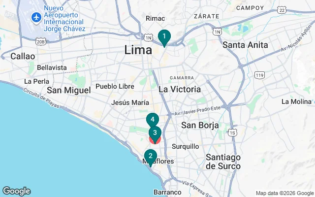 Our meeting point to start the Tour will be in Huaca Puccllana, a pre-Inca temple from the 4th century AD. We will get to know the Parque del Amor in the Miraflores neighborhood overlooking the Pacific Ocean. We will visit the Plaza San Martín, we will have time to take some pictures, where we will start the walk through our beautiful city arriving at the Plaza Mayor observing the Cathedral, the Government Palace and the Municipal Palace We will visit the Old Post Office and the Telegraph House today known as the home of Peruvian gastronomy.