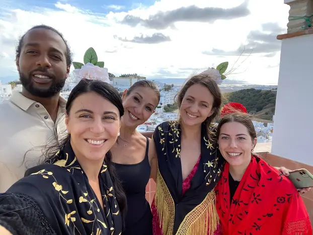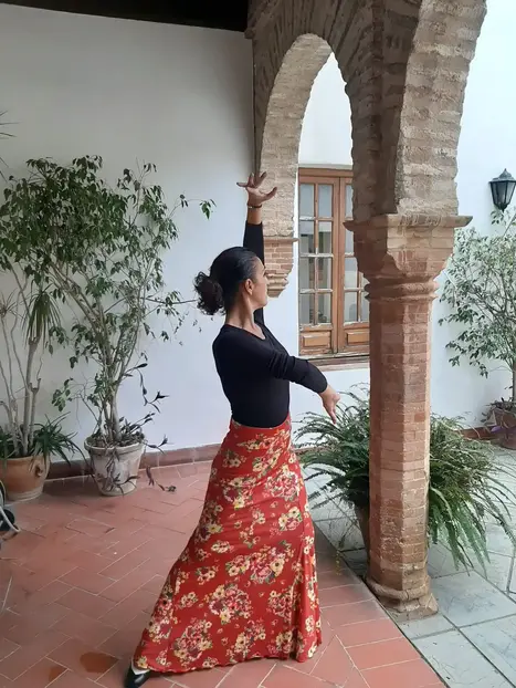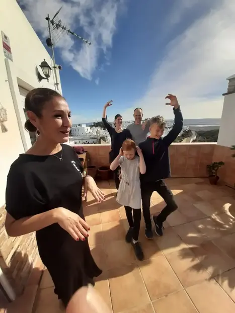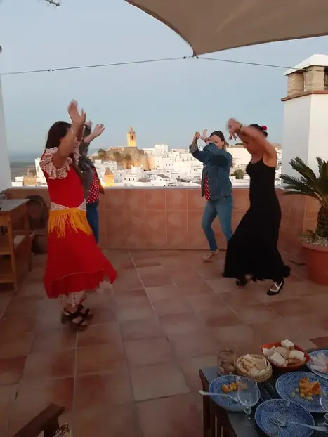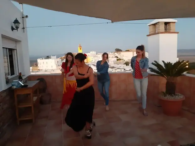 Participation in a flamenco activity to learn flamenco dance steps, especially sevillanas, and learn about the history of flamenco in Vejer.