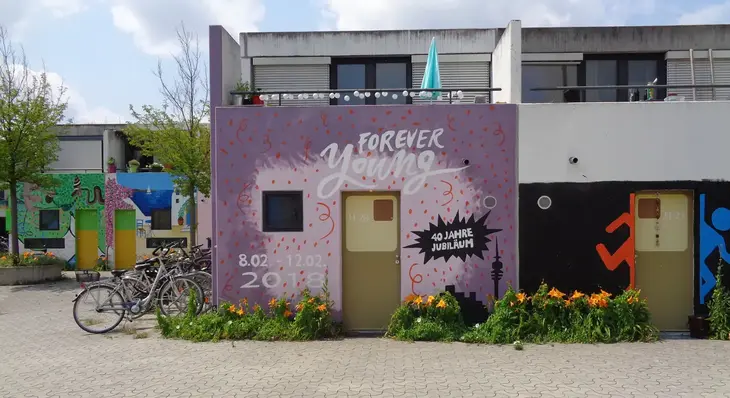 We will talk about different topics. On this tour, you not only get to know the unique student association, but also gain insights into student life on site. You will also get an overview of the creation and concept of the facility, the park and the surrounding area, which was built in 1972 for the Olympic Games. We also talk about the first terrorist attack in Germany during the 1972 Olympic Games and will show you the sights.