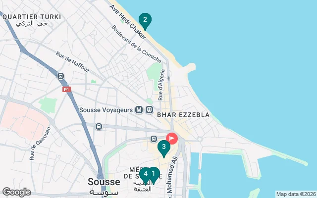 We will reach the city's highest point, which is still occupied by the Kasbah (Alcazaba), Forlalza's palace and, for centuries, the seat and formal residence of the administrators of Sousse. Currently, the fortress houses the country's second archaeological museum, which includes a rich collection of Roman mosaics is a must-see for anybody interested in learning about the various cultures that the city has known throughout its history.