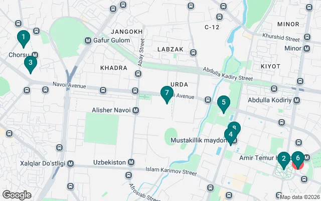 Visiting metro stations with history, art gallery, Romanovs house, Rashidovs statue, opera house, war memorial, canals, Chorsu bazaar, trading domes, mosque, Kukeldash Madrassah 16c, mausoleums, Ceramic master shop and many more.15c