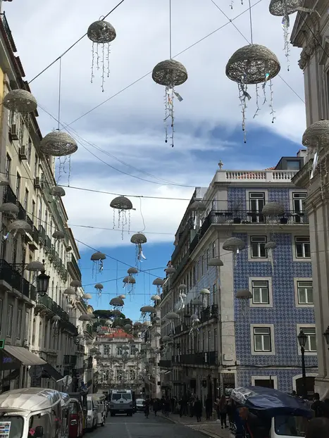 We begin our city tour at the Lisbon Market Hall , an exciting mix of traditional market stalls and hip event gastronomy. From here we go through one of the most original districts of Lisbon up to one of the most beautiful "miradouros" - with a magnificent view over the river and the photogenic 25th of April Bridge . We find out how it got its name and why the Cristo Rei spreads his arms over Lisbon.