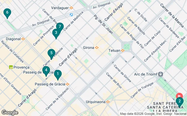 We will continue towards Paseo de Gracia, and we will see his work in the "Manzana de la Discordia", the Casa Lleò i Morera -by far, the doorman is not very nice-, and the Publishing House. Afterwards, we will enter the Eixample to see the Palau Montaner, Casa Tomas, Casa La Madrid and we will finish in one of his last works, Casa Fuster, at the end of Paseo de Gracia.