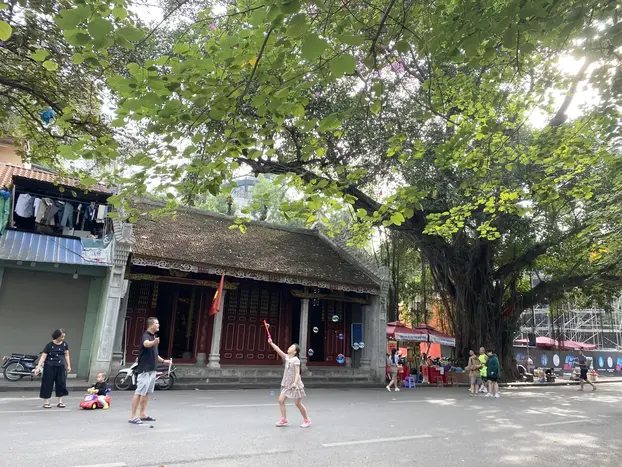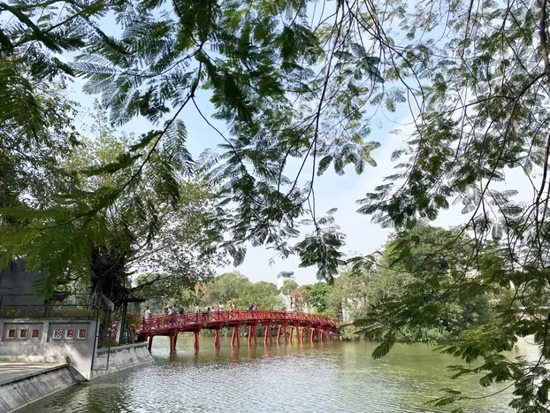 1. At first, we’ll meet at No.29 Dinh Tien Hoang street, then try famous egg coffee in Hanoi and walk a few steps to look around Hoan Kiem lake where we have beautiful red bridge and Ngoc Son temple in the middle of the lake (We'll not visit inside Ngoc Son temple, cause will visit another one).