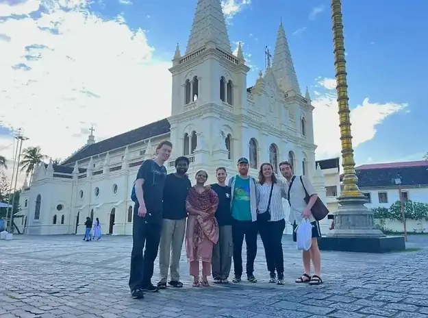 From portughese era we will witness St Francis Church where Vasco da gama was burried, Moving on foot we will see from outside pandal cafe,kashi cafe, Cochin club,David Hall,bishop house,indo portughese museum,Dutch cemetery,beach,st Francis l p school , peterceli street,quieros street and santa cruz basilica Church and then we will enter in to local market and local area of kochi.