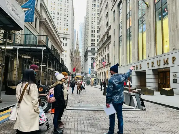 Eventualmente llegaremos a muchas de las atracciones más reconocibles de Nueva York . Aprenderá la historia detrás de la Estatua de la Libertad , Wall Street , la Bolsa de Valores de Nueva York , la Iglesia de la Trinidad , el Banco de la Reserva Federal de Nueva York , la Capilla de San Pablo , el Ayuntamiento y el Edificio Woolworth.