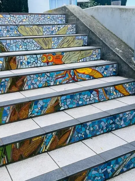 Stunning mosaic tiled stairs.