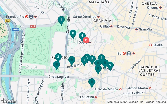 During this tour, which starts at Plaza Isabel II (Metro Opera), we will talk about two dynasties that made Madrid a monumental capital and the magnificent buildings surrounding the eastern part of the Royal Palace of Madrid, such as the Madrid Opera, Plaza de Oriente, and the details that adorn it, making this square one of the most historic in the city. We will then focus on two of the most representative buildings in the area: the Royal Palace of Madrid, where we will discuss the origin of the War of Independence against Napoleon that began outside the Royal Palace, and the Almudena Cathedral, the patroness of the city of Madrid. We will then visit one of the nerve centers of commerce in medieval Madrid, Plaza de la Villa, and the buildings that adorn this iconic square of Madrid. We continue the tour passing through the most famous gastronomic market and its surroundings, descending Calle Cuchilleros where we will see different restaurants with a lot of history, such as the Caves of Luis Candelas, Sobrino de Botín considered the oldest in the world, and not to be missed, one of the streets with the best gastronomy in the city, none other than Calle de la Cava Baja located in the La Latina neighborhood, the oldest neighborhood in Madrid. We conclude our tour at Plaza Mayor of Madrid, which is currently the most representative square of Habsburg Madrid. So don't waste any more time and come to know and enjoy the city like a true Madrilenian.