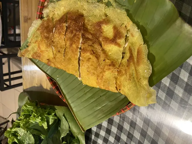 - Banh xeo: the crispy pancake with rice roll paper and herbs