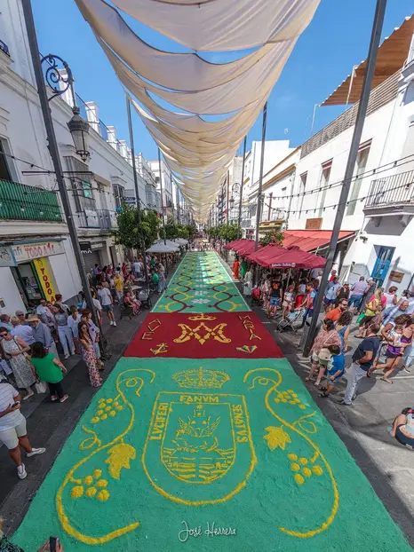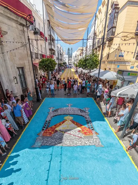 Although it is a national holiday due to the Assumption of the Virgin, the day of our patron saint is celebrated here by decorating the city for her procession. To do this, in addition to dressing the balconies, the paving of the streets is also dressed with colorful salt carpets .