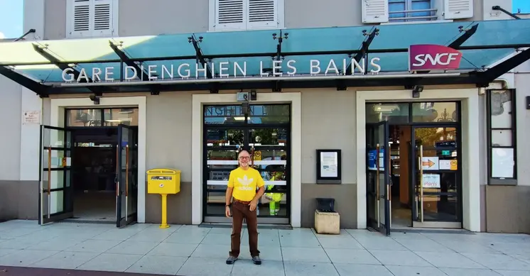10 short minutes by train from Paris Gare du Nord platform 34 or 35, train ticket 2.5 from anywhre in Paris or around, Enghien les Bains is part of Grand Paris and the only city owning a casino and a lake. Enghien is a small city with an original architecture.